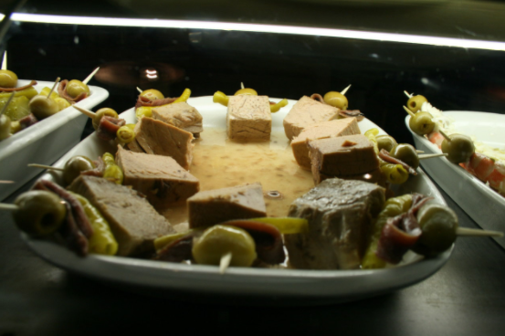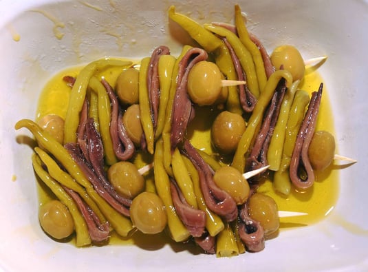 Bonito con guindilla, anchoa y oliva.